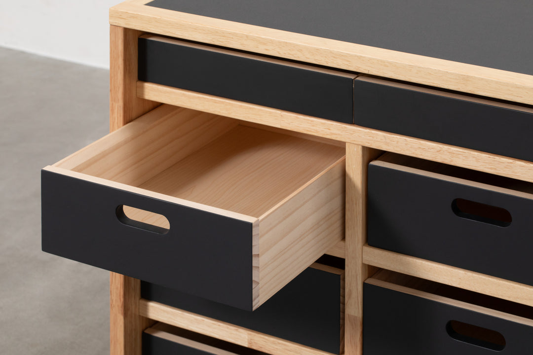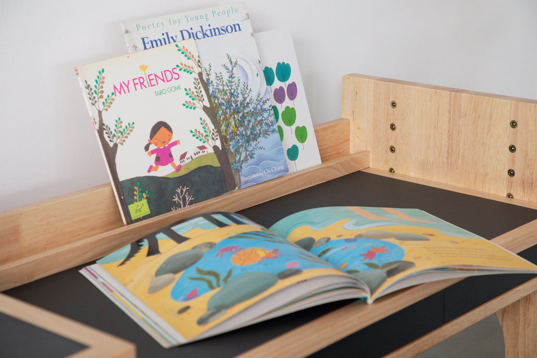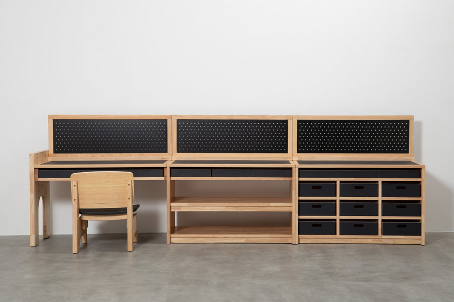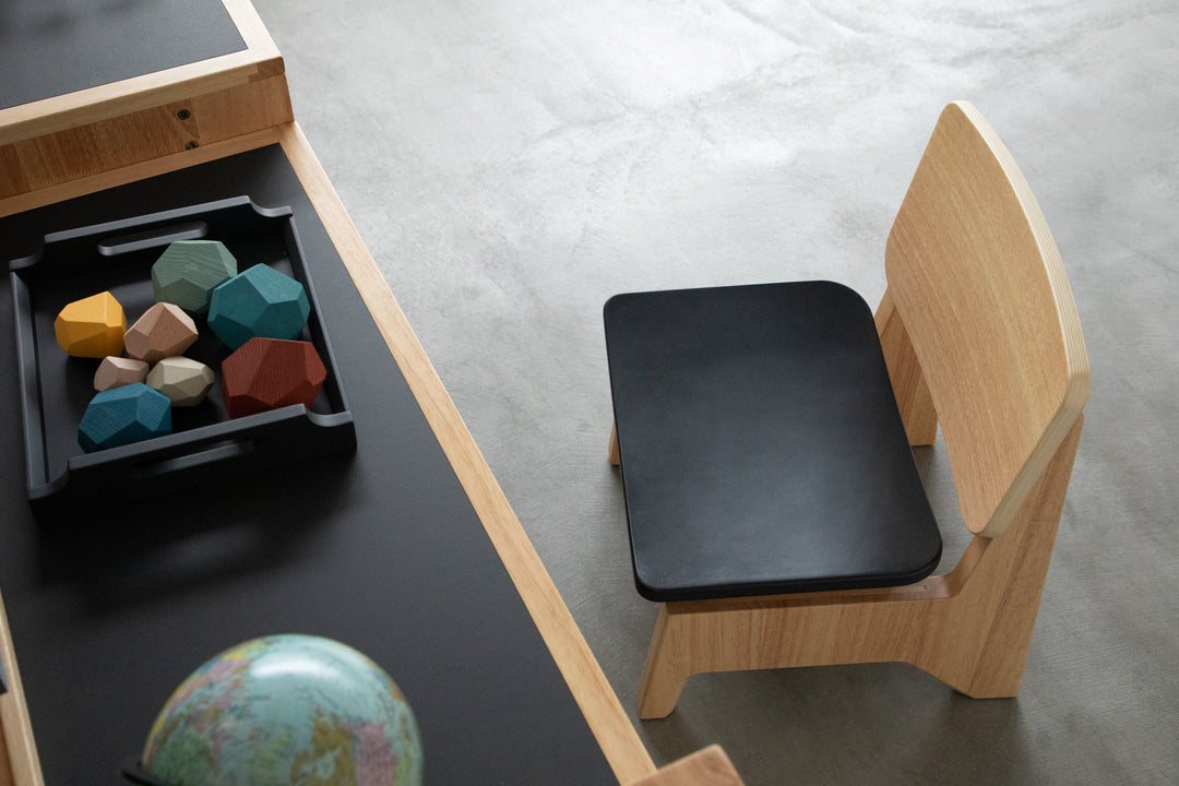 親子が最も長い時間を過ごすリビングに置いてもらいたいからこそ、教育性や機能性も持たせつつ、決してデザインにも妥協をしていません。こだわりのインテリアを邪魔しない、唯一無二のモダンなキッズ家具です。