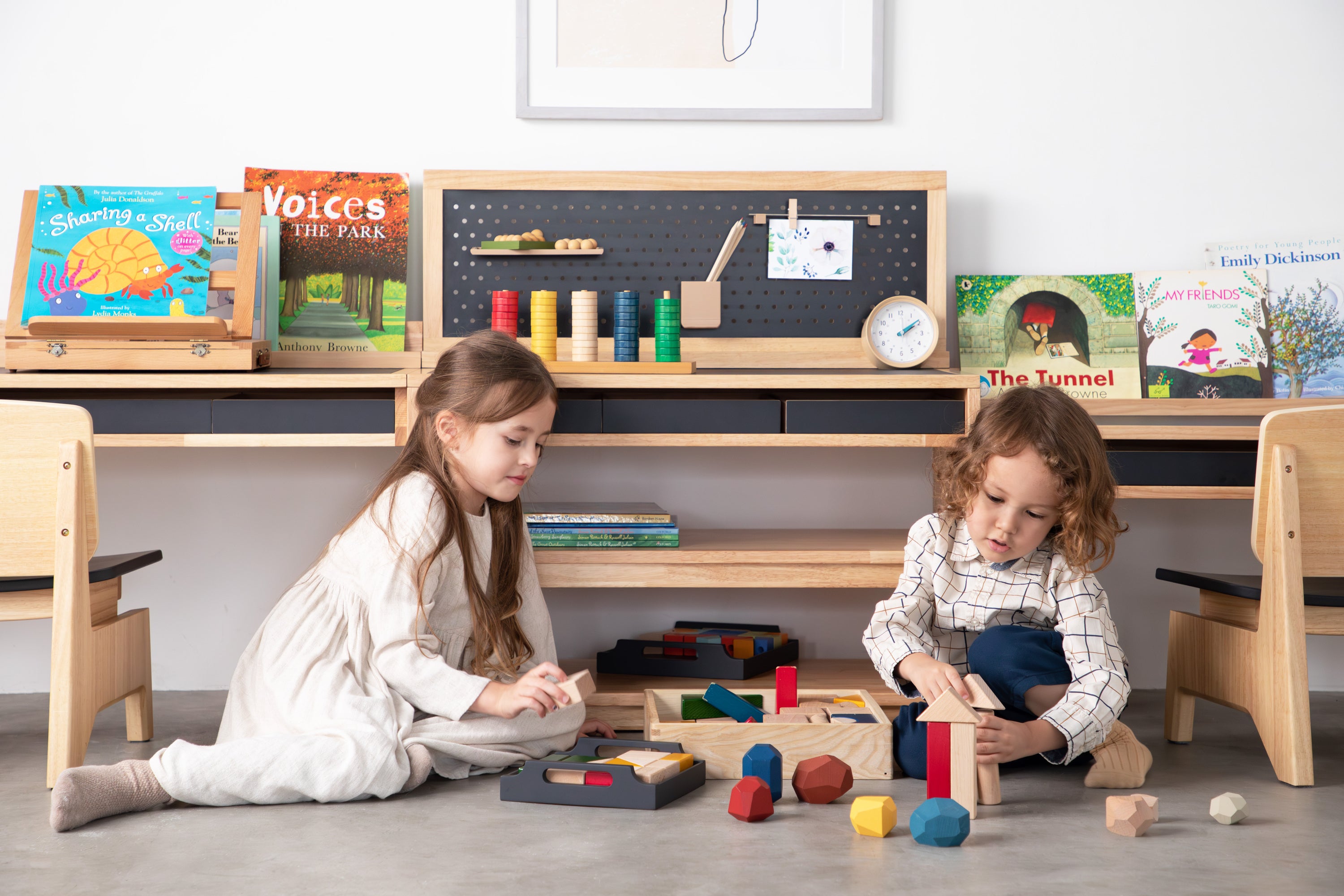 国際モンテッソーリ教師資格を持った清水美香氏を監修に迎え、モンテッソーリ教育メソッドを家庭に取り入れられる家具を作りました。 お子さまの「自分でできる」を叶え、自発的な活動を促します。