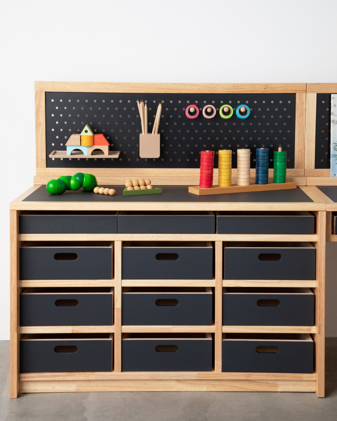 そんなモンテッソーリ教育への尊敬と共感から生まれた知育家具ブランド・MINORINO(みのりの)のキッズデスクはリビングにこそ置きたくなるデザインと機能で、 子どもの「考えたい」「動きたい」を自然に引き出します。