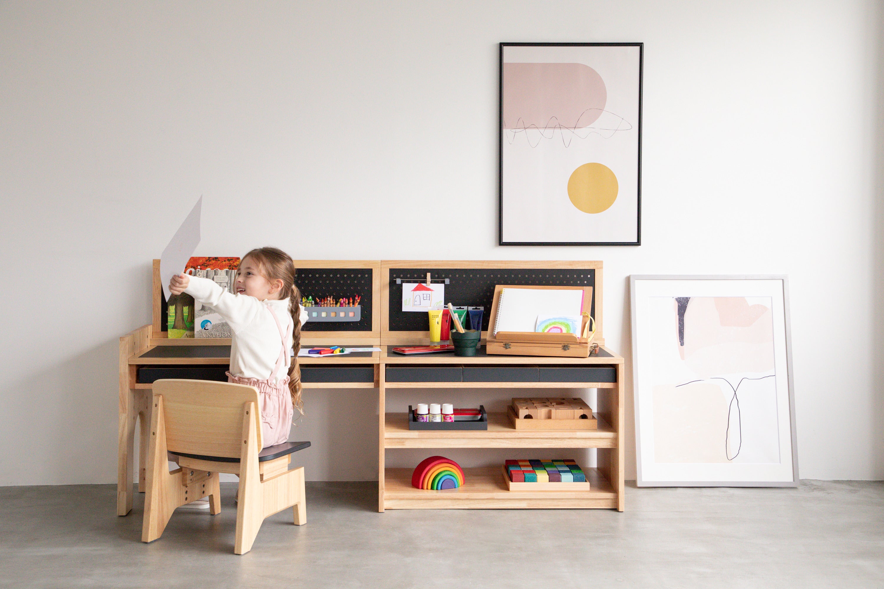 「インテリアになる知育家具。」をコンセプトに、国際モンテッソーリ教師監修のもと、子どもの自立心や思考力を育むための設計がされたキッズ家具・MINORINO(みのりの)。MINORINOの設計において、私たちが教育的価値と同じくらい大切にしているのがデザイン性です。それは、親子が長い時間を共に過ごすリビングでこそ使って欲しいという思いがあるためです。そんなMINORINOの魅力を、認知発達支援の専門家である沢井佳子先生に第三者視点で語っていただきました。
